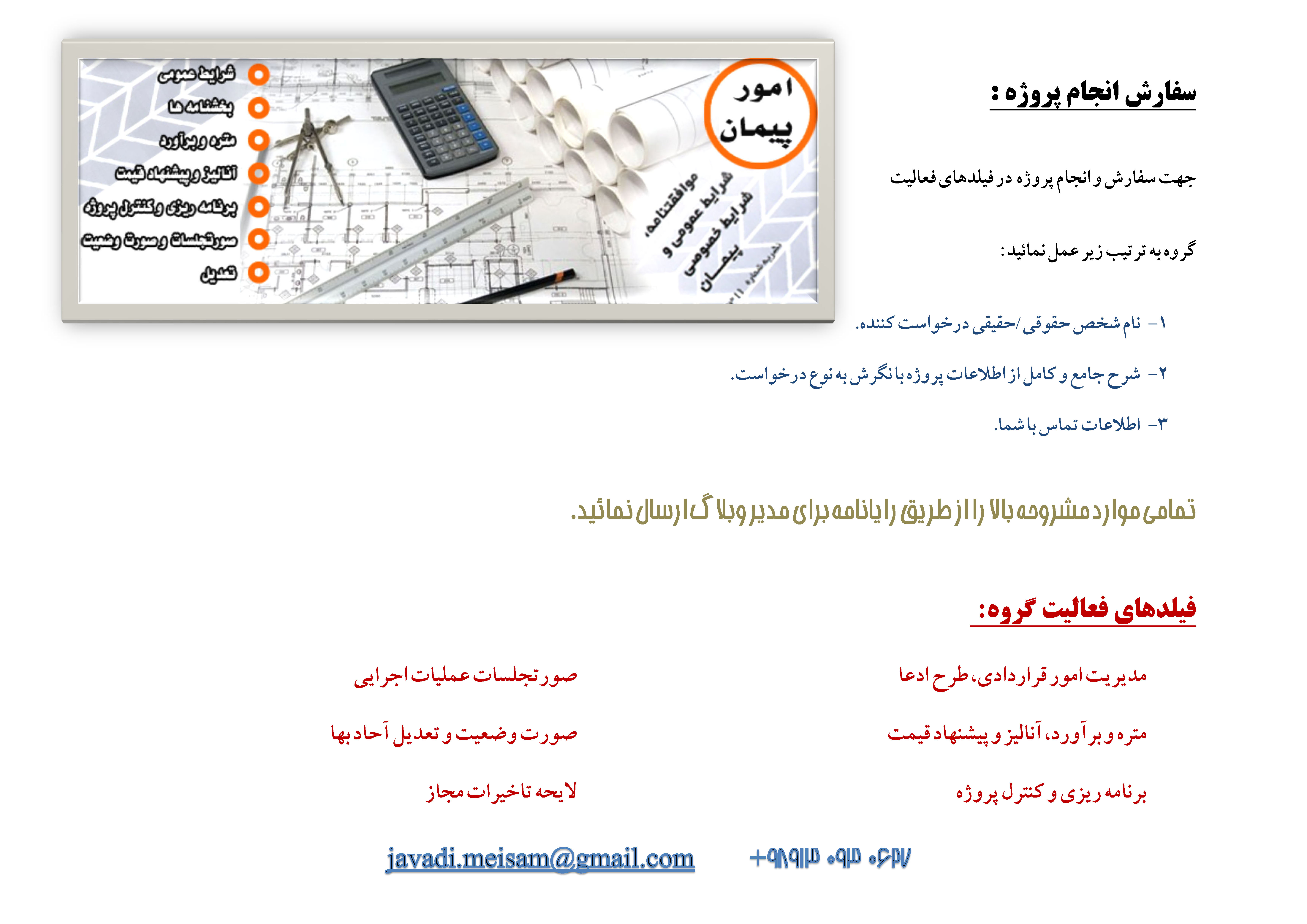 سفارش پروژه و انجام کار